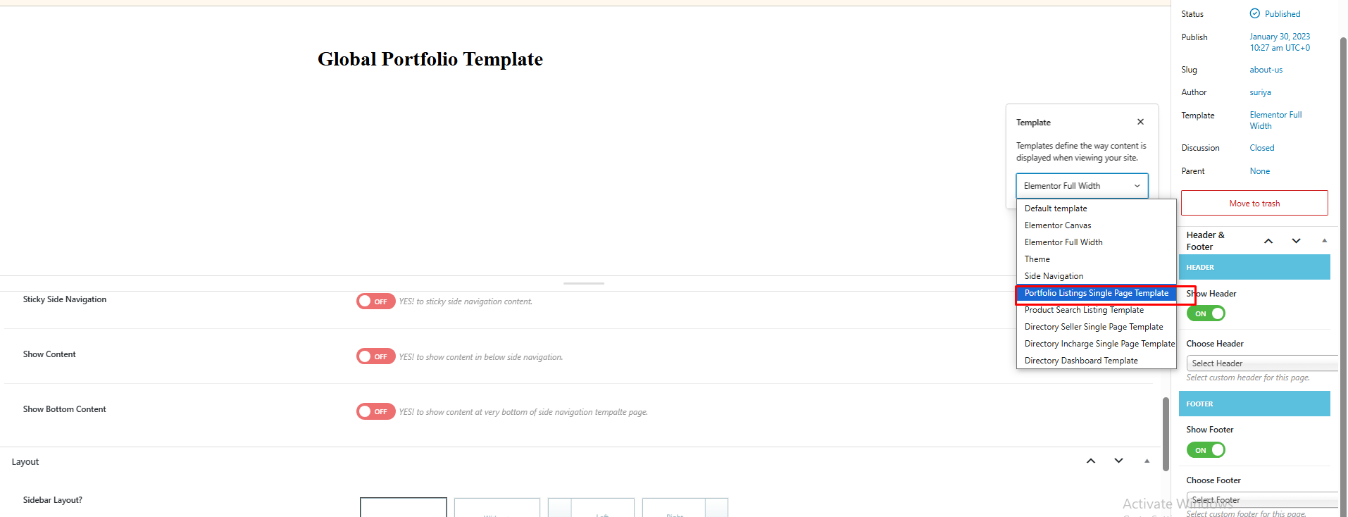 Portfolio Detail Page Template Options