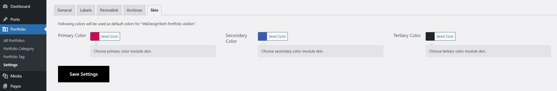 To set up and manage your portfolio properly, ensure that the WeDesignTech Portfolio Addon is installed and activated. Below are the key configuration settings for portfolios:
