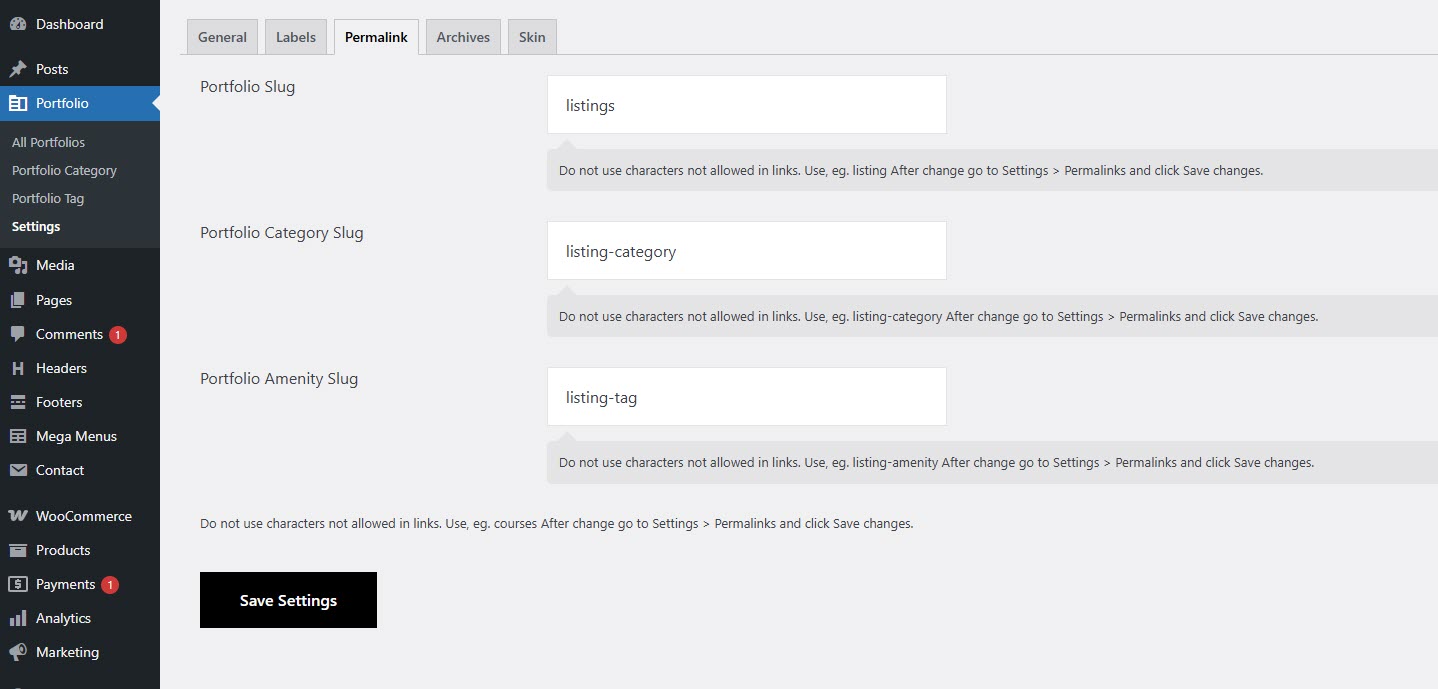 Portfolio Slug: Change "listings" to a preferred term.