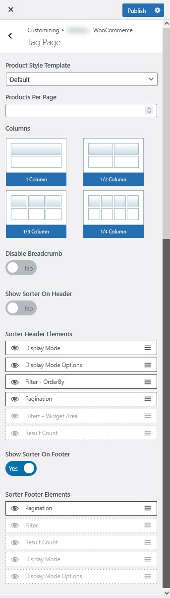 Show Sorter On Footer: Displays sorting options at the bottom of the tag page.