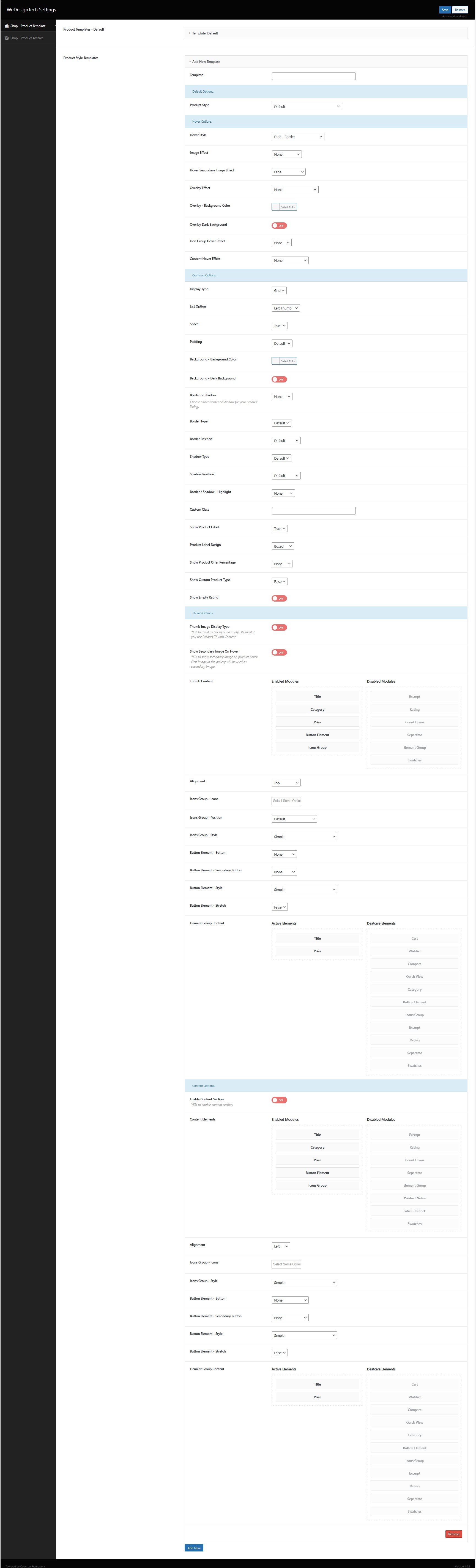 Default Options These are the basic settings that apply to the product template by default, such as overall layout and style.